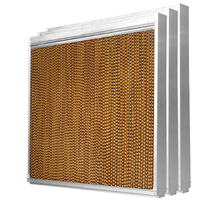 降溫水簾墻是通過蒸發降溫的一種高效經濟的降溫方式。干熱空氣通過水簾進入室內,由于水簾內孔壁均勻布滿水膜,這樣室外新鮮空氣穿過水簾時,水簾上的水會吸收空氣中的熱量并產生蒸發現象,使新鮮空氣溫度下降,濕度增加,完成降溫過程,從而使廠房里的空氣變得涼爽、濕潤。